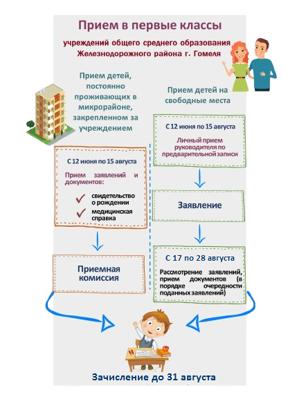 Информация о сроках приема документов для зачисления в 1 классы учреждений общего среднего образования детей: